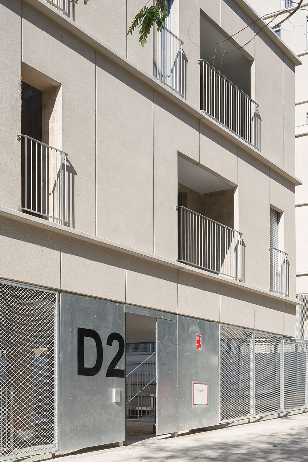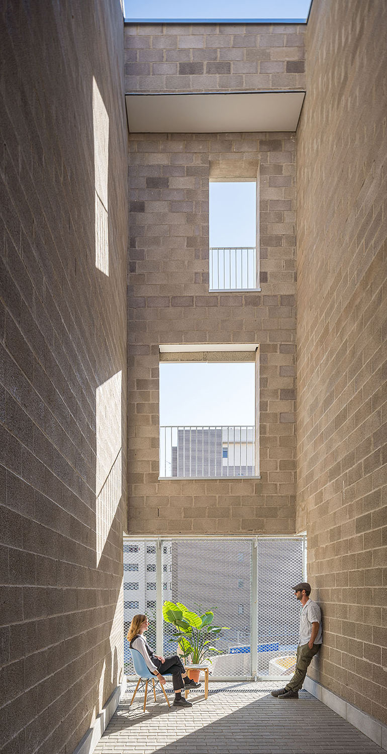 TAAs. Javier García-Germán, Alia García-Germán Calle de la Corona, 11-17 y Calle del Dinero, 20-22, MadridEl proyecto se encuentra en una zona de nuevo ensanche en el suroeste de Madrid, y está ubicado junto a grandes vacíos urbanos que contrarrestan el efecto isla de calor urbano de la ciudad en verano. Está conformado por dos piezas de tres plantas que miran al sur, y en su interior se encuentran tres plazas bien soleadas conectadas por un graderío, que constituyen los accesos al edificio desde la calle. Un basamento de tres plantas se adapta a la geometría del solar y se cierra a las calles circundantes para dar privacidad a las plazas interiores, pero se abre en lugares singulares para dar continuidad a la trama urbana.
